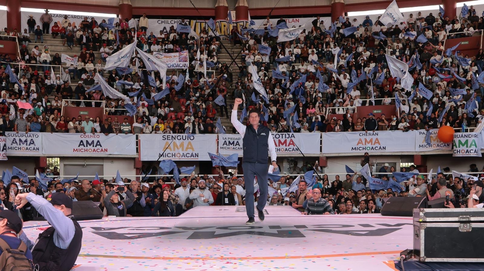 En medio de porras y gritos de aliento de las y los miles de asistentes, Alfonso Martínez destacó que AMA Michoacán es una invitación a todas y todos los que se esfuerzan y trabajan de forma honesta, a dejar de estar de rodillas y levantarse para hacer juntos un mejor estado.