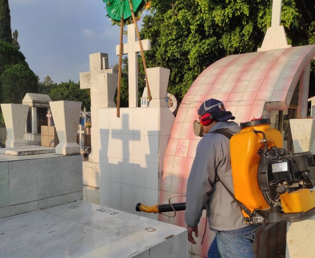 El director de Salud Pública, Jaime Ramírez Oregel, informó que la Brigada Municipal de Lucha contra el Dengue fue la encargada de intervenir ambos panteones municipales. Estas labores consisten en la aplicación de insecticidas de ultra bajo volumen para erradicar al mosquito en su etapa adulta y eliminar posibles criaderos en recipientes que acumulan agua de lluvia o de riego floral.
