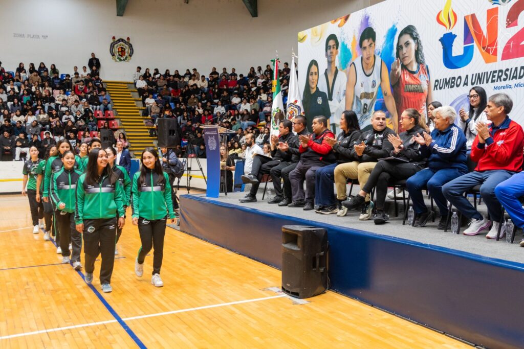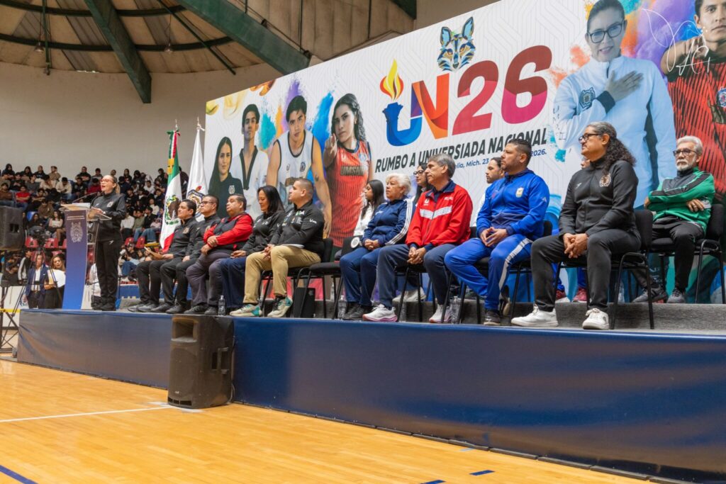 Morelia, Michoacán, a 23 de marzo de 2026.- El talento gana juegos, pero el trabajo en equipo gana campeonatos, señaló la rectora de la Universidad Michoacana de San Nicolás de Hidalgo (UMSNH), Yarabí Ávila González, al inaugurar la etapa estatal de la Universiada 2026, en donde estuvo acompañada por el secretario General Ejecutivo del Consejo Nacional del Deporte de la Educación, A.C. (CONDEE), Manuel Alan Merodio Reza.