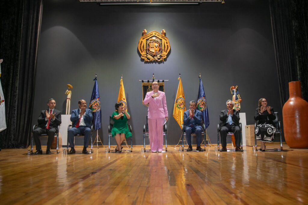 Como egresada de la Máxima Casa de Estudios del Estado, compartió que estar en la UMSNH es sumamente conmovedor, al referir que creció en los pasillos de la Facultad de Derecho y Ciencias Sociales, tras compartir que su madre fue catedrática y su padre director de la dependencia, “junto con mi hermana que también es profesora en esta Universidad crecimos con plena conciencia de su valor y su importancia”.