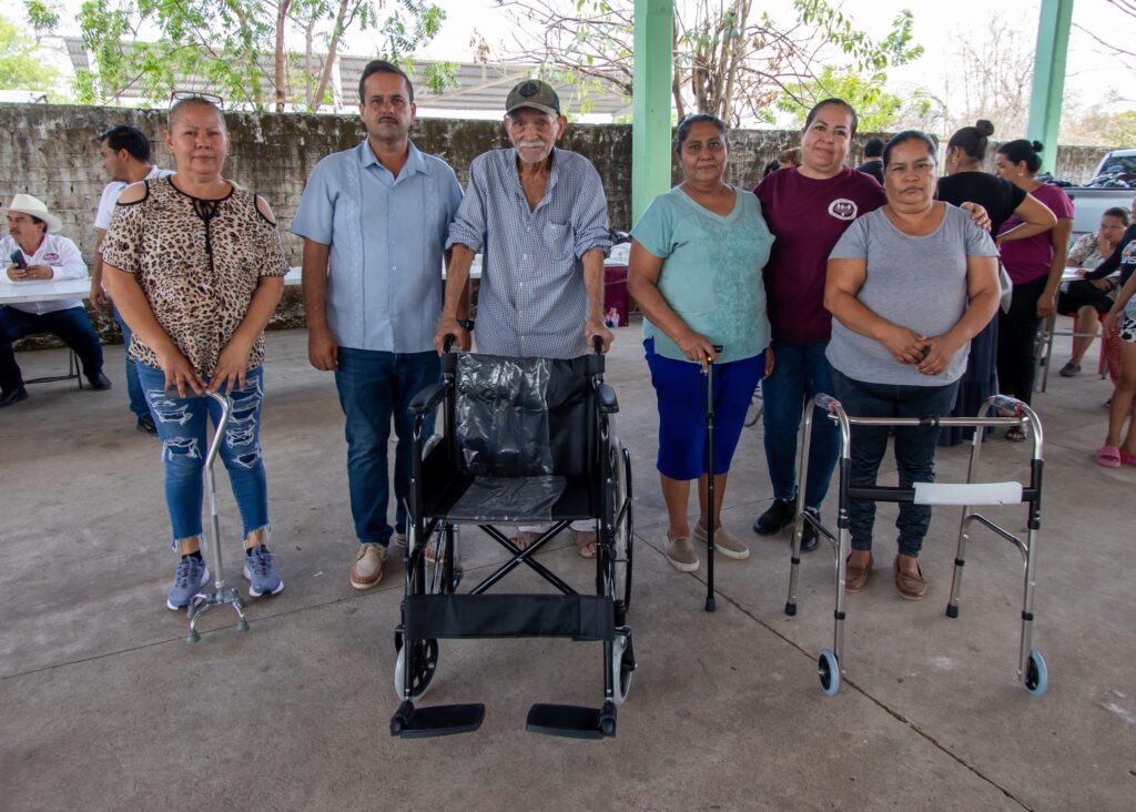 Durante la visita, la administración municipal hizo entrega de equipo de movilidad para personas con discapacidad y adultos mayores, incluyendo una silla de ruedas, bastones y una andadera. Asimismo, se distribuyeron 150 despensas con productos de la canasta básica para fortalecer la economía familiar en ambas localidades.